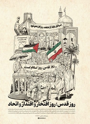 حضرت آیتالله خامنهای: «راهپیمایی روز قدس همیشه نشانهی اتّحاد ملّت ایران و اقتدار ملّت ایران است؛ همچنین نشانهی این است که ملّت ایران بر سر اهداف مهم و سیاسی و اساسی خود، پایدار و بااستقامت است. اینجور نیست که شعار حمایت از فلسطین را بدهد، بعد که یکی دو سال بگذرد رها کند. چهل و چند سال است روز قدس ملّت ایران در راهپیمایی شرکت میکنند، در هوای سرد، هوای گرم، با دهان روزه، در سراسر کشور، نهفقط در شهرها؛ در شهرهای بزرگ، کوچک و روستاها. بنابراین راهپیمایی روز قدس یکی از افتخارات ملّت ایران است..»