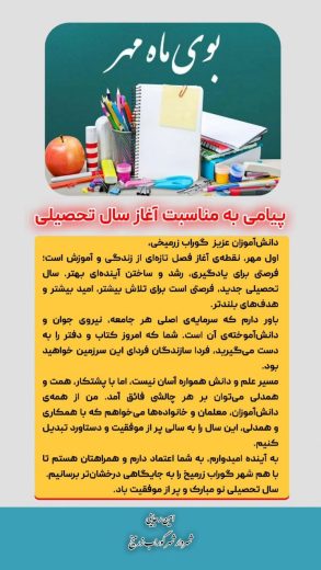 اول مهر، نقطهی آغاز فصل تازهای از زندگی و آموزش است؛ فرصتی برای یادگیری، رشد و ساختن آیندهای بهتر. سال تحصیلی جدید، فرصتی است برای تلاش بیشتر، امید بیشتر و هدفهای بلندتر.
